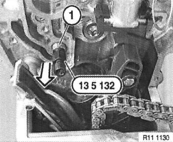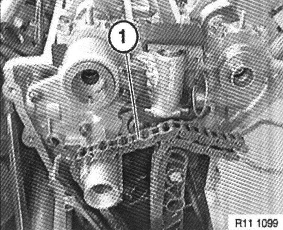 Feed timing chain (1) onto camshaft adjustment unit distributor.