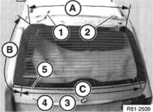 Place a support (e.g. special tool 00 9 312) between rear lid upper section (4) and rear lid lower section and secure with adhesive tape.