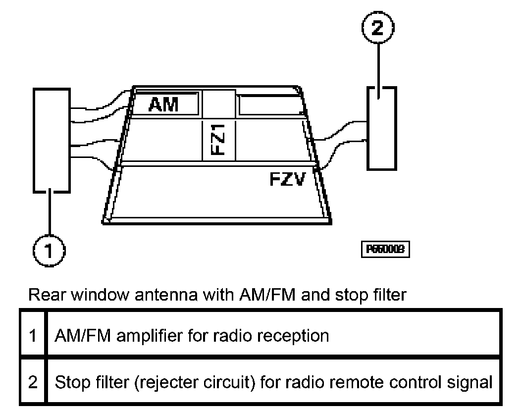 The receiver is accommodated together with the antenna in the interior rear-view mirror. The receiver transfers received radio signals via the FZV line to the central body electronics control module where they are evaluated.