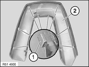 Carefully slide special tool 00 9 317 between covers (1 and 2) and detach cover (1) in direction of arrow from catches.