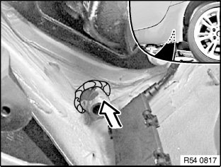 Expose water drain hose at bottom of wheel arch (remove underbody protection) and feed out towards top.