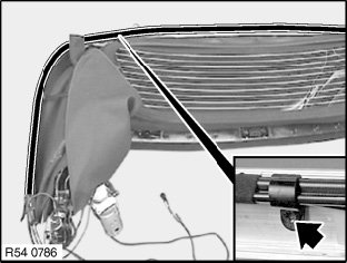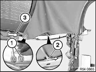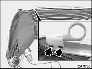 Release screws (1) of front strap on convertible top strip.