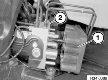 Attach special tool 32 1280 over pump motor and valve block.