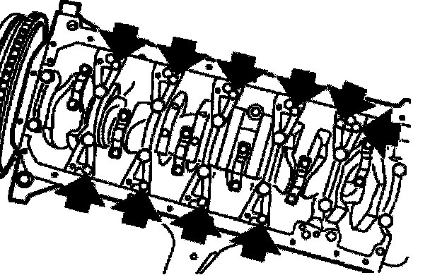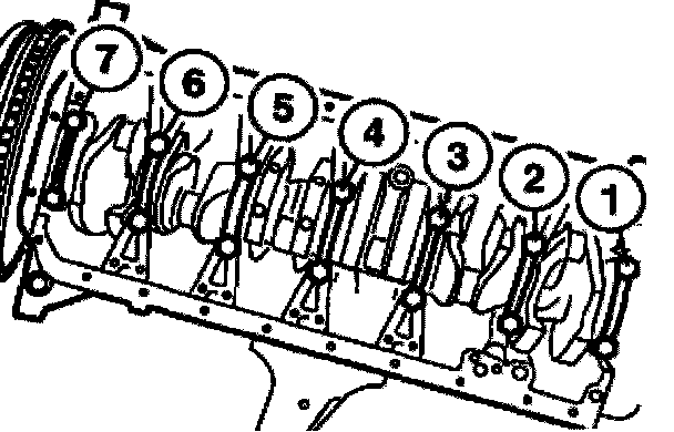 Remove main bearing caps (1 to 7).