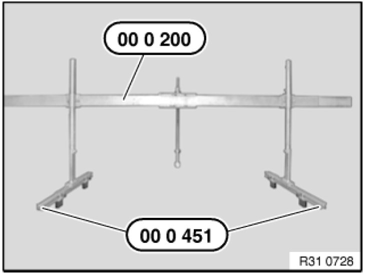 Assemble cross member 00 0 200 with special tools 00 0 202, 00 0 204, 00 0 208.