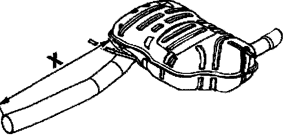 Carry over length of new rear muffler (X) to faulty rear muffler.