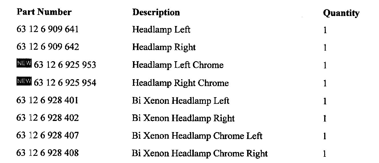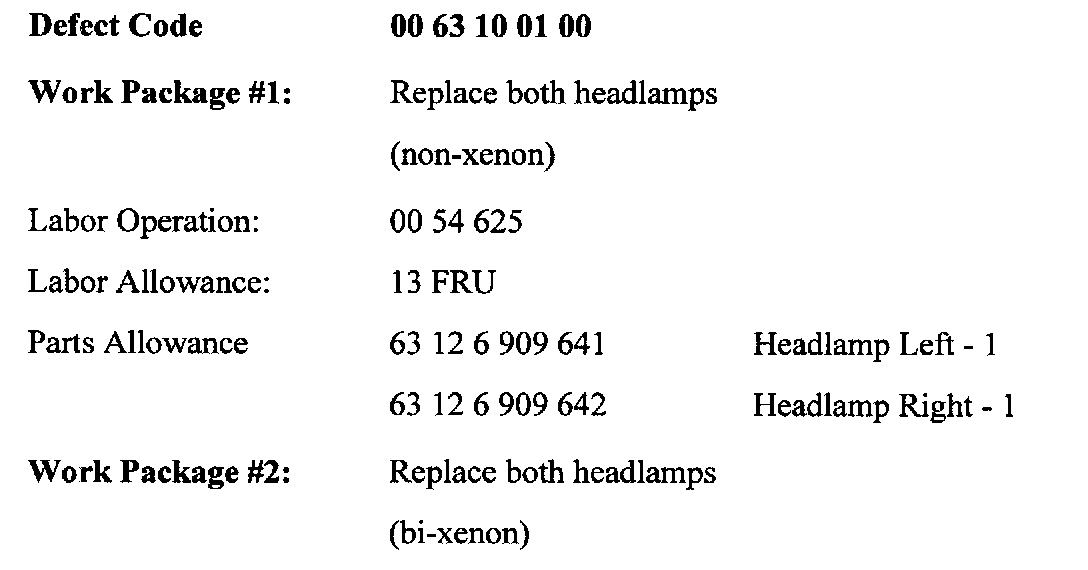 For repair instructions, refer to RA 63 12 001 (non xenon) or RA 63 12 010 (xenon)
