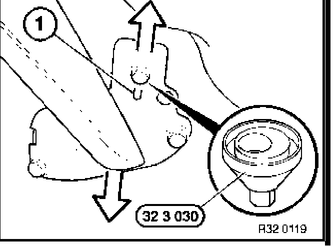 Attach special tool 32 3 030 to screw head and to journal (1).