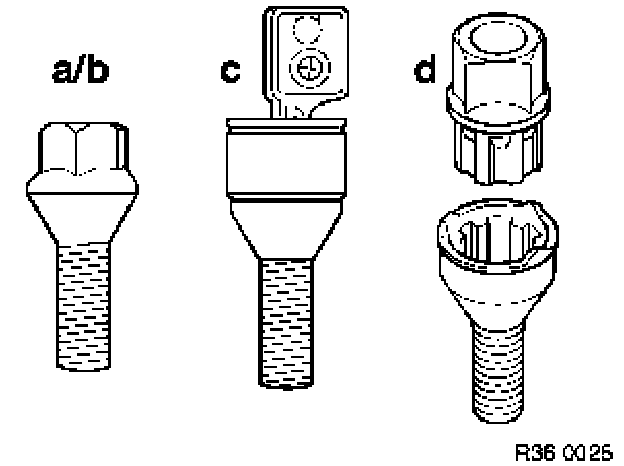 Note: To release and tighten down lockable wheel stud, use a matching adapter from special tool 36 1 300 (wheel stud adapter set).