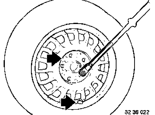 Remove dirt, grease residues and corrosion from contact face (1) of disk wheel with special tool 36 1 250.