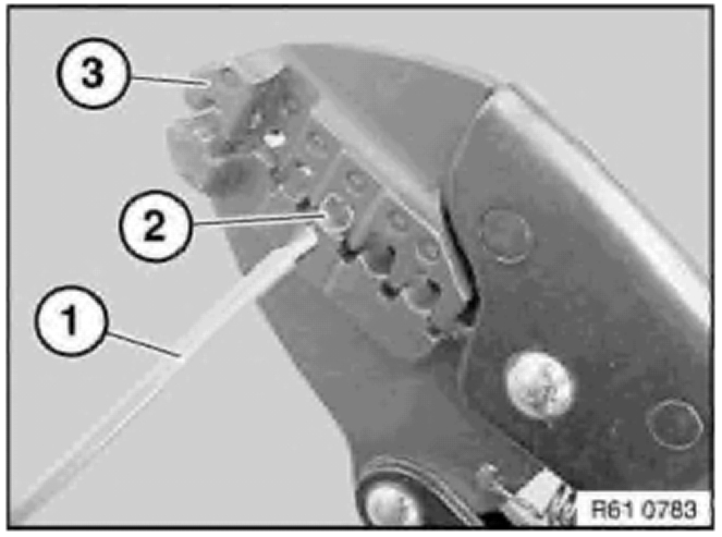 Open crimping pliers (3) and remove cable (2).