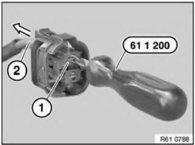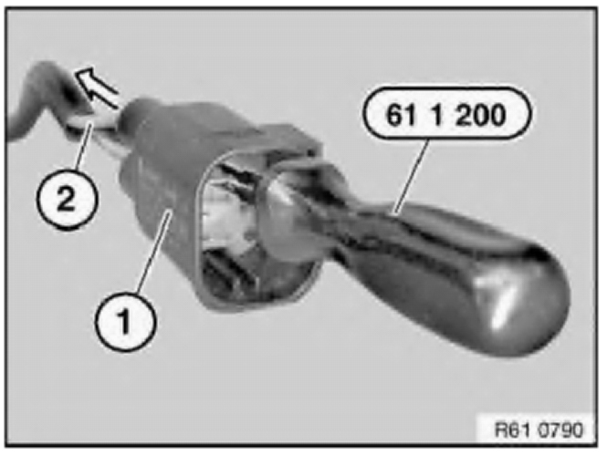 Insert special tool 61 1 200 into socket housing (1) and pull out lead with LCC contact (2) in direction of arrow.