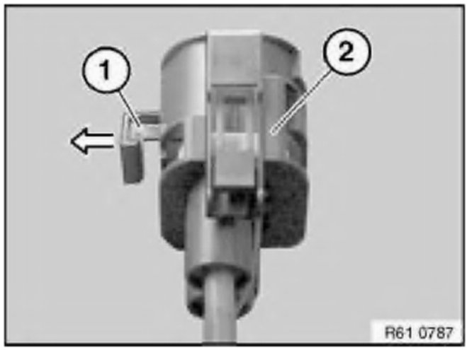 Insert special tool 61 1 200 into pin housing (1) and pull out lead with LCC contact (2) in direction of arrow.