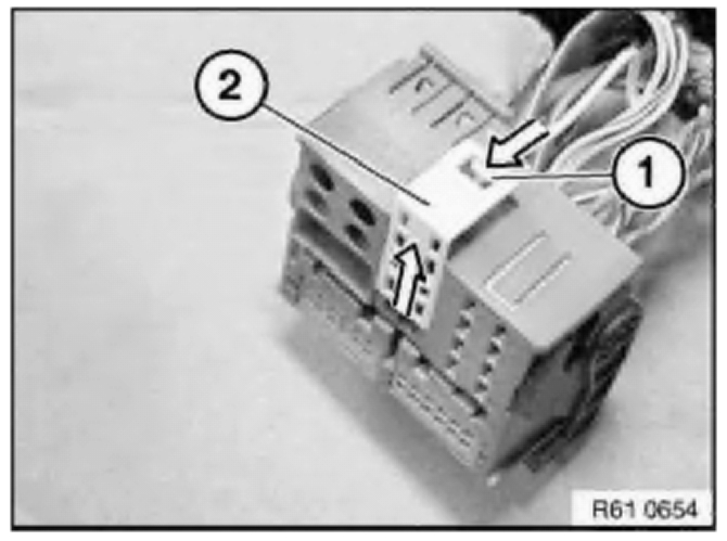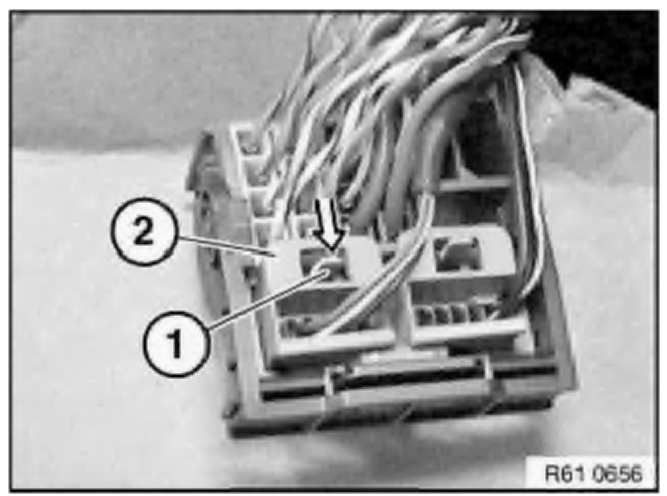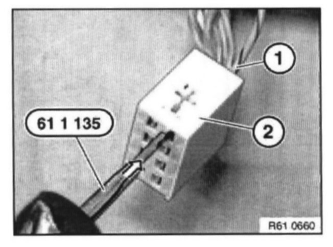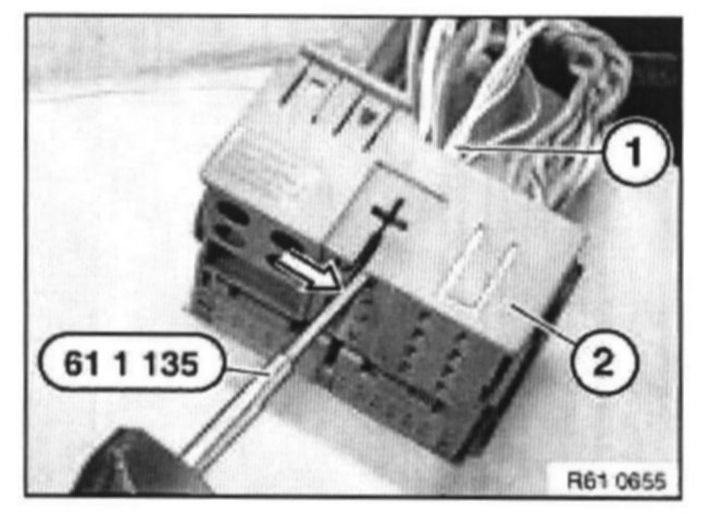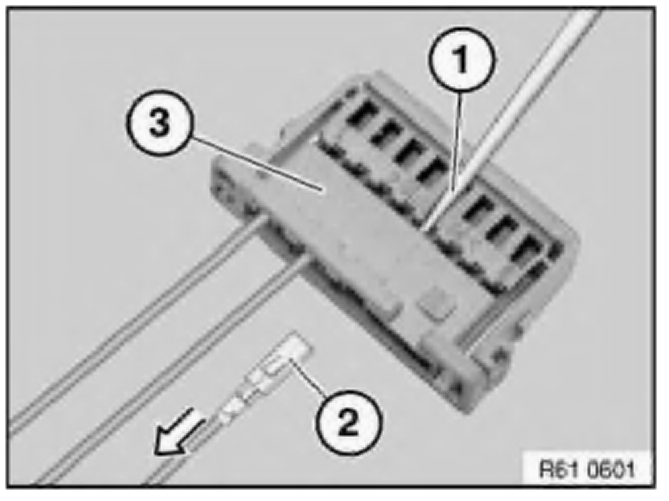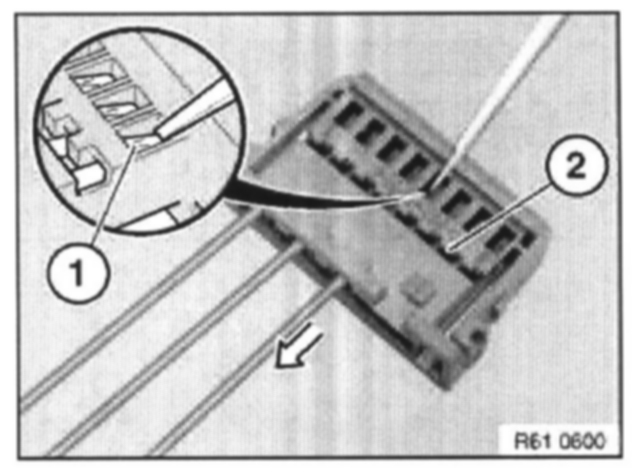 Press special tool 61 1 135 on inside of contact into contact carrier (2).