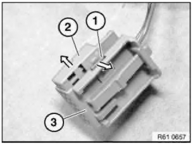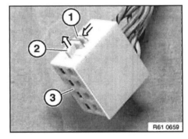 Press lock (1) in direction of arrow. Pull contact carrier (2) out of housing (3).