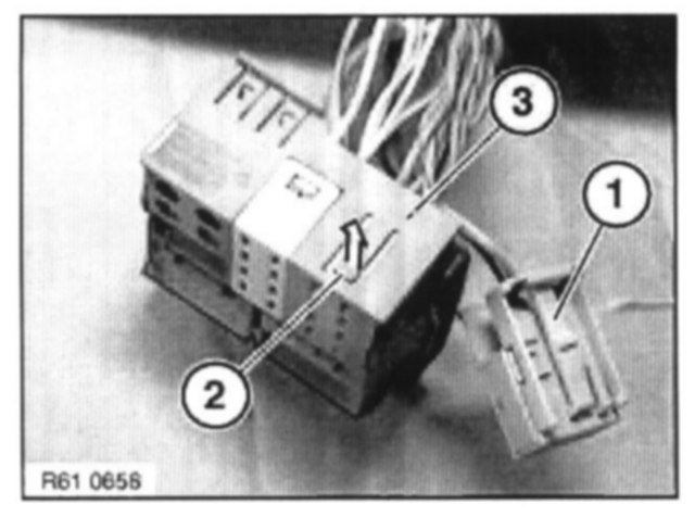 Press lock (1) in direction of arrow and pull housing (2) out of radio plug.
