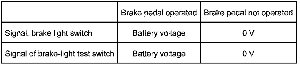The two signals of the brake-light switch behave in relation to one another according to the following table: