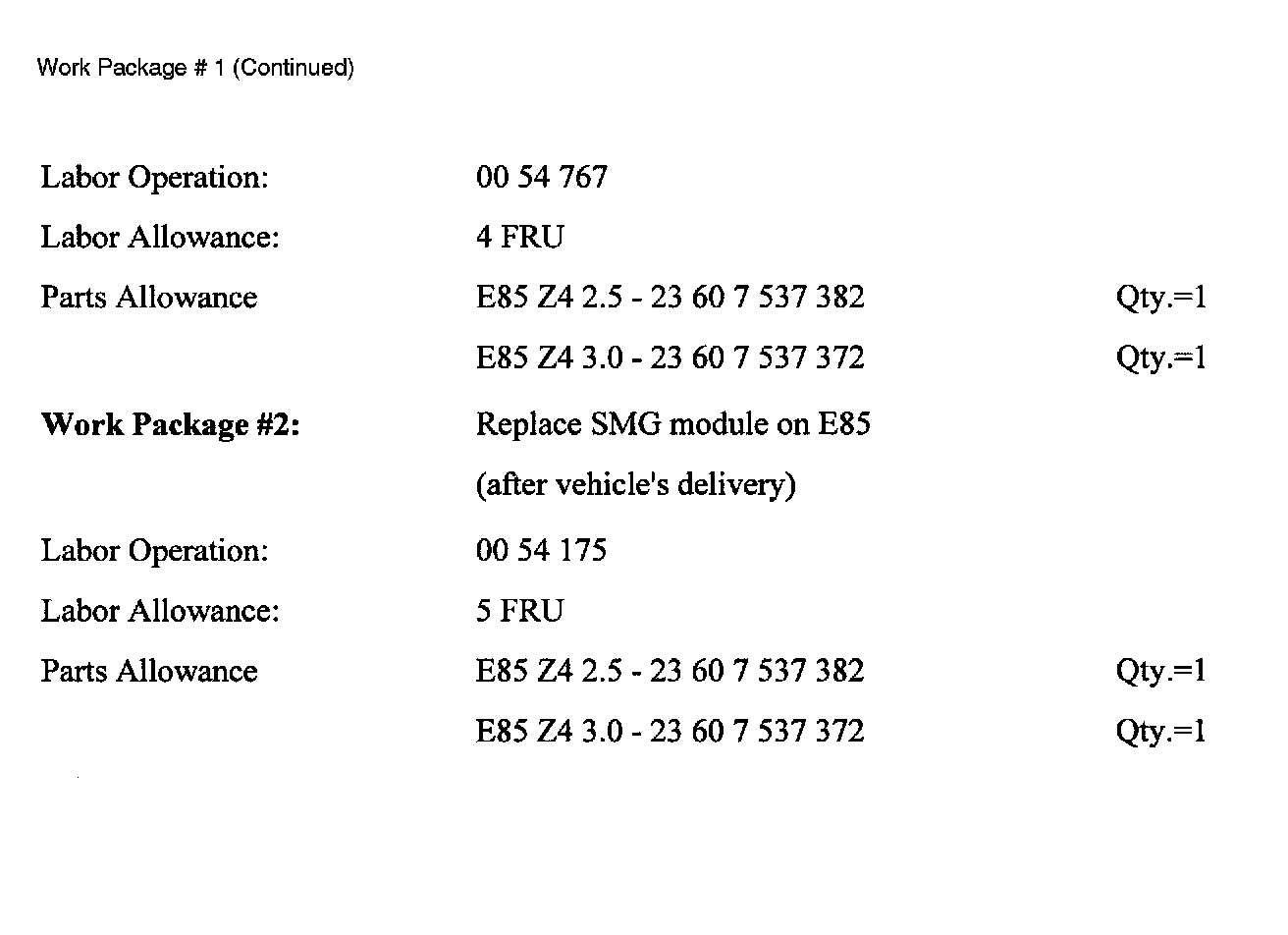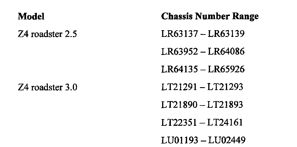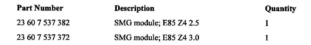 This Service Action involves E85 (Z4) vehicles with M54 engines and SMG transmissions which were produced from March 1st, 2003 up to July 31st, 2003.