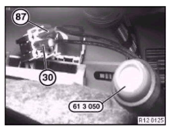 Connect special tool 61 3 050 to terminal (87) and terminal (30).