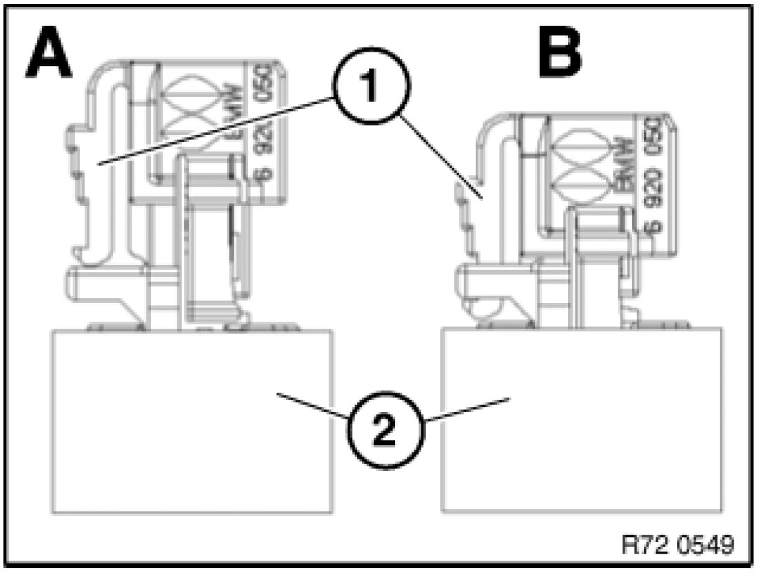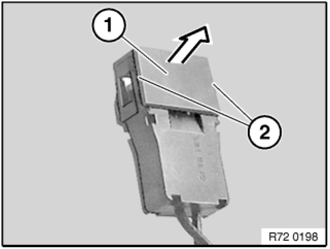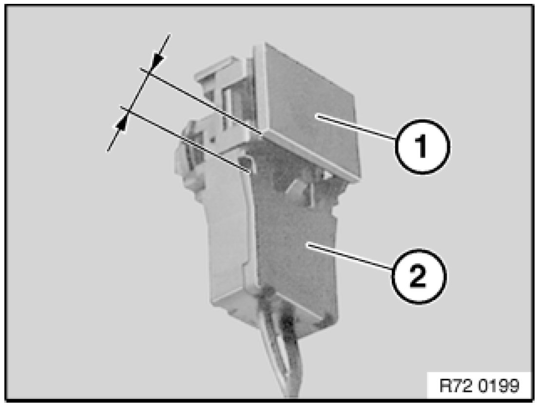 - After attaching airbag plug connection to gas generator/ airbag module, check whether detent lug (2) is visible will the airbag plug connection gas generator/ airbag module be correctly engaged.