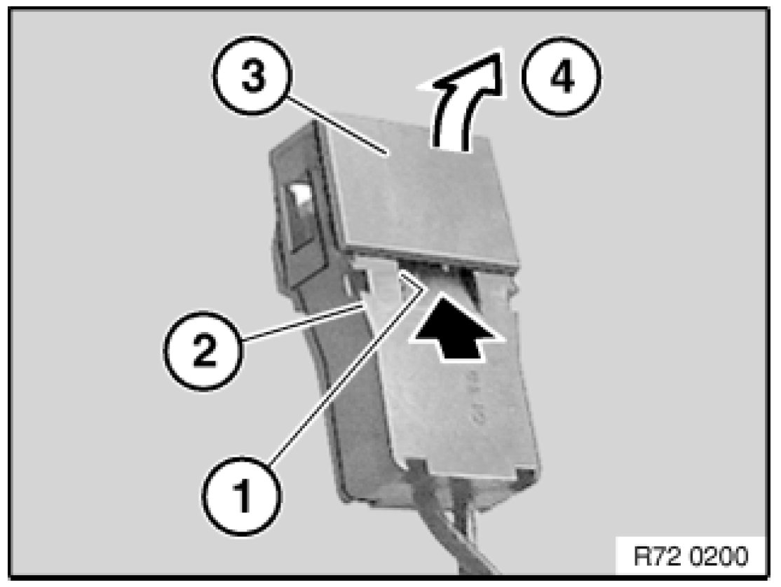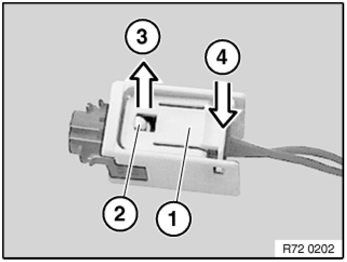 - Press locking/ unlocking plate (1) on edge (3) and pull plug (2) out of plug housing (4).