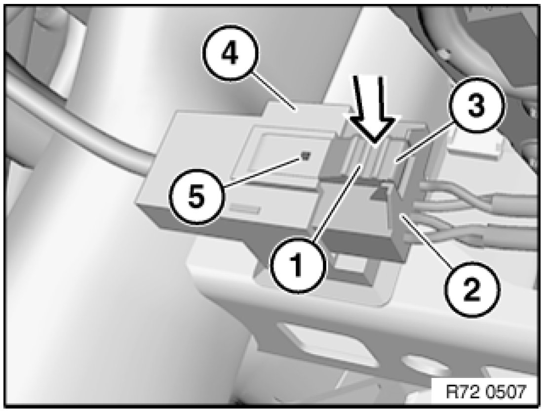 - Only if detent lug is visible in opening (5) will the gas generator/ airbag module plug connection be correctly engaged.