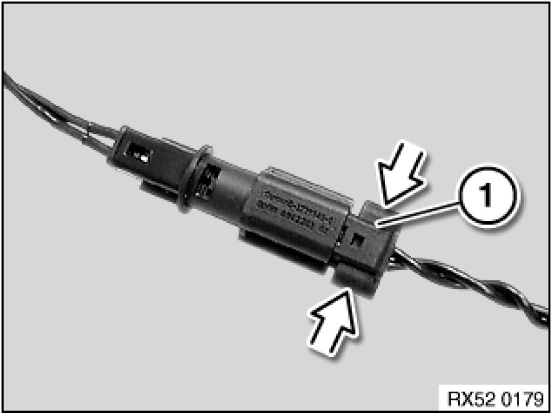 - Press locking clip at edge and disconnect plug (1).