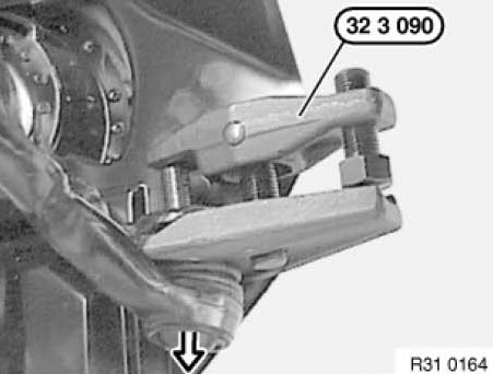 Unscrew nut and pull off tie rod using special tool 32 3 090.