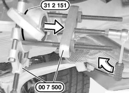 Detach holder with special tool 00 7 500 and 312 151 from control arm.
