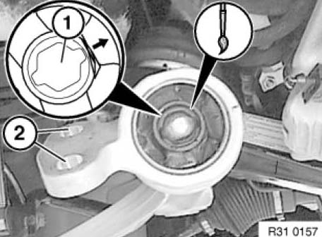 Important: If the position of the rubber mount is not strictly adhered to, this will result in impaired vehicle handling and early rubber mount wear!