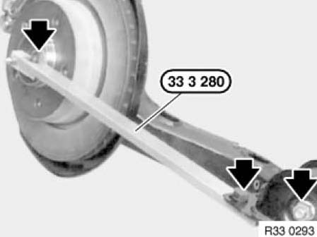 Secure special tool 33 3 280 to bearing pedestal with a screw and align to wheel center. Screw bearing pedestal down in this position.