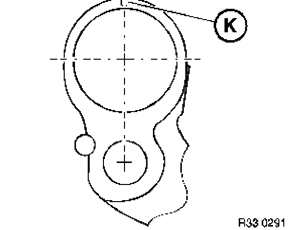 Arrow on special tool must point to colored spot (K)!