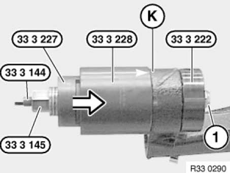 Position special tool 33 3 228 so that that arrow on special tool points in withdrawal direction.