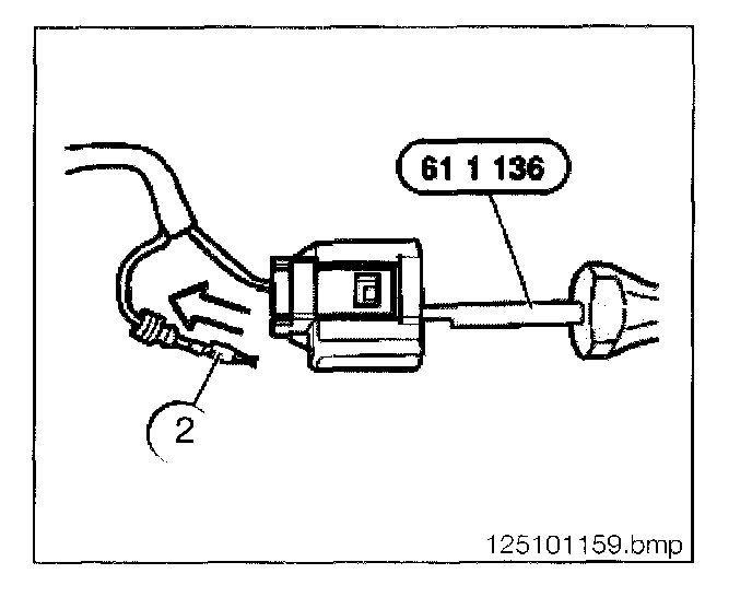 - Unlock contact with special tool 61 1 136 and pull out cable (2) and contact towards rear.