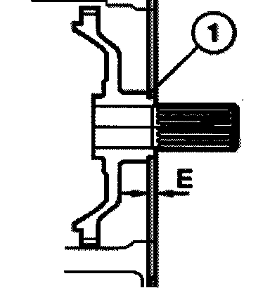 Calculate dimension (E) from sealing face on transmission case to recess (1) on sprag wheel.