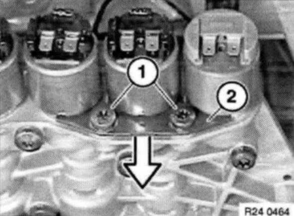 Curved surface of retaining plate (2) must point to solenoid valve or pressure regulator.