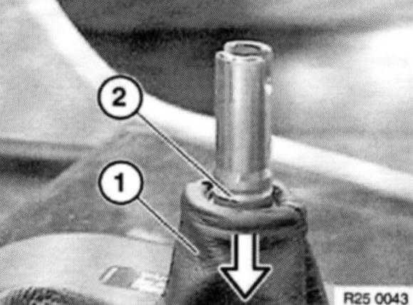 Push rubber gaiter (1) down until groove (2) is fully exposed.