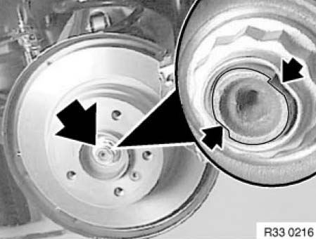 Screw on special tool 33 2 116 with 3 wheel studs (1).