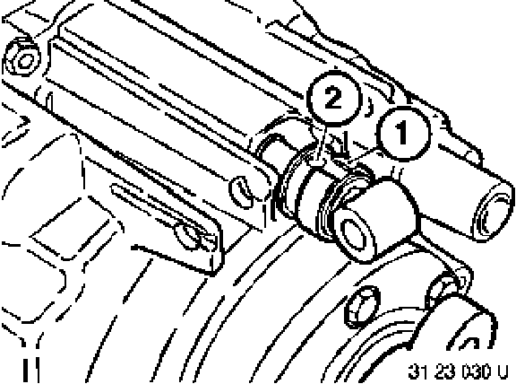 Converting shift rod joint: Push back locking sleeve and retaining ring (1). Drive out straight pin (2).