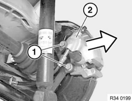 34 21 745 Removing and installing/replacing left or right rear brake caliperRemove rear wheel.
