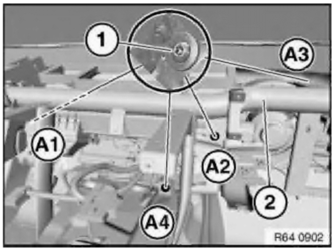 Tighten down screws (1) in sequence (A1-A4) to specified tightening torque = 4 Nm.