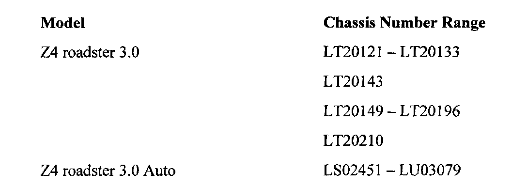 This Service Action involves E85, Z4 vehicles with M54B30 engines which were produced from November 13th, 2002, up to December 3rd, 2002.