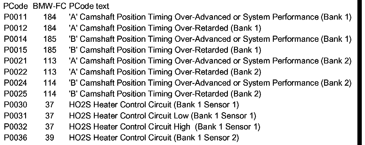 Diagnostic Trouble Code Descriptions