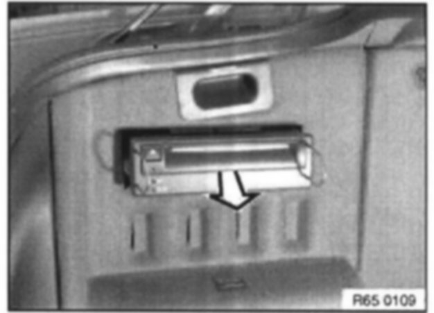Unlock navigation computer with special tool 65 5 400 and pull out in direction of arrow.