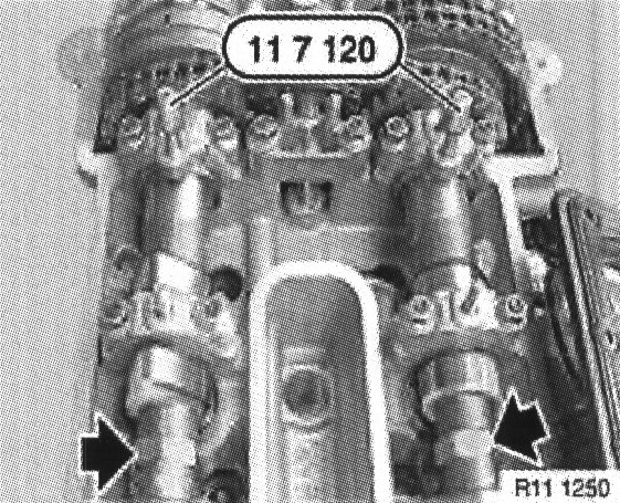 Caution: Before the VANOS adjustment unit is removed, the camshafts on cylinder bank 5 to 8 must be rotated back to their initial position.