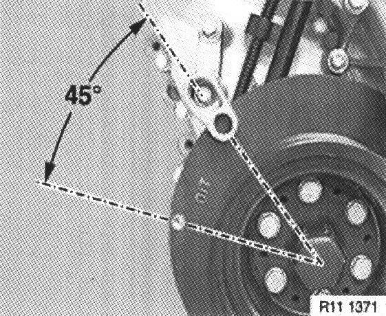 Crank engine at central bolt against direction of rotation to 45, before TDC position.