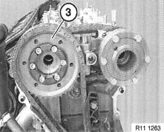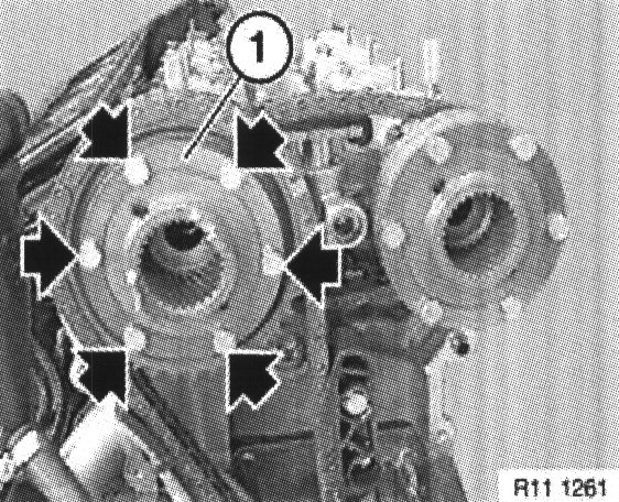 Remove slackened bolts. Take off spacer ring (1).