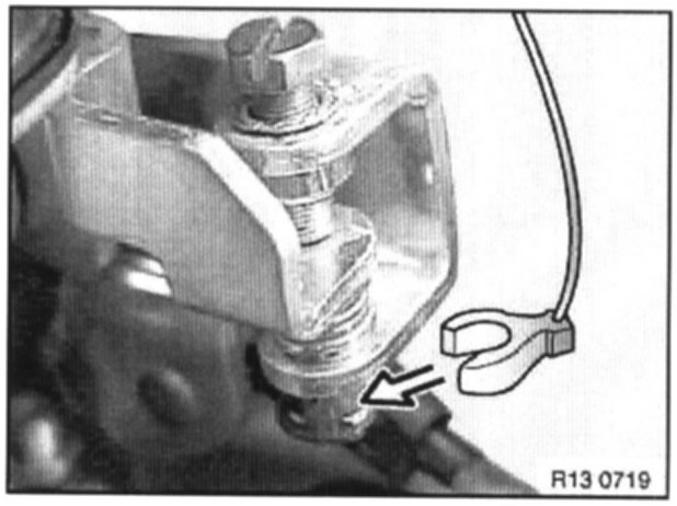 If the pull rod length has to be checked or adjusted or the pull rod has to be replaced, press the pull rod off the ball head on the throttle side. Open throttles to do so. Work carefully, do not bend throttle lever.