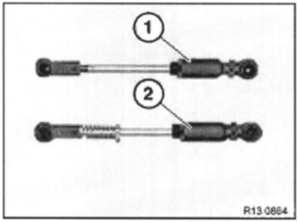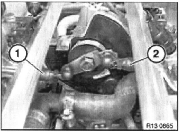 The non-adjustable pull rod (1) of cylinder bank 1-4 is replaced by an adjustable pull rod (2) (versions as on cylinder bank 5-8).