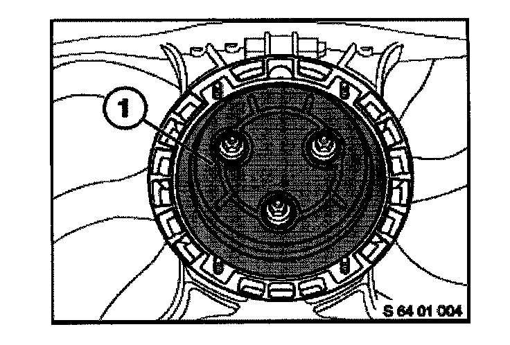 2. Check the BMW part number on the fan/shroud assembly. The part number is located on the lower right side of the shroud (molded next to the BMW logo, or on the label printed next to the logo). The number can be read from the outside, through the lower radiator grille (location indicated on the illustration).